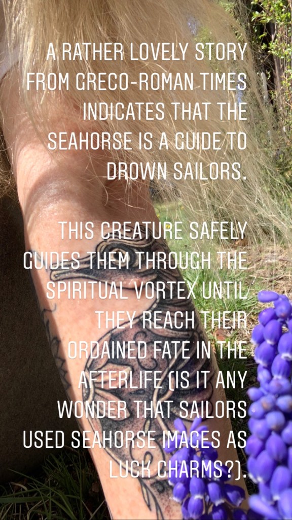 As previously mentioned, being a lover of the sea, I am also a lover of the creatures that dwell in it. Seahorses hold a particular fascination. While their appearance seems almost magical enough to be as mythical as a mermaid, they are in fact real. Aside from being fascinating in all the very factual ways they are, the mythology behind them is equally delightful. As highlighted in that previous post the folklore between Seahorses and mermaids stands in sharp contrast to each other. It doesnāt take any deep pondering to see the points I am making there.