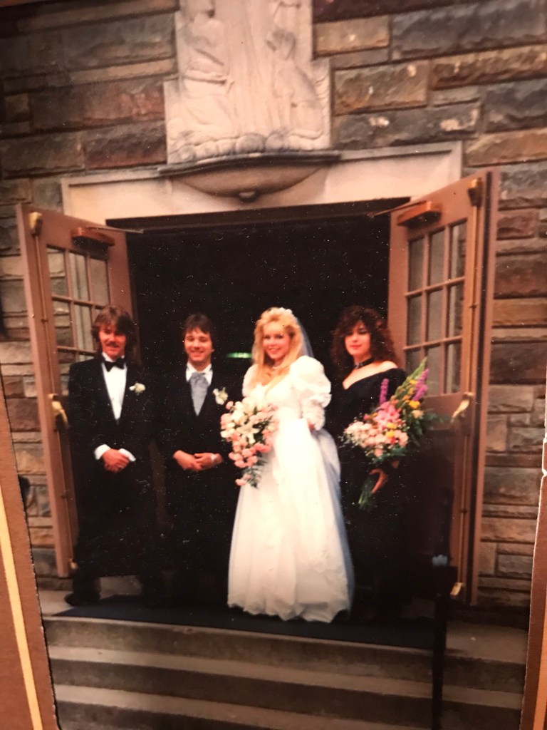 So about that first wedding – oh my sweet, handsome, looking like a young Brad Pitt, of a boy first husband. A million apologies to him for all the times I drove us off of cliffs during our stretch on the road of life, buuuut in all fairness, he willingly came along for the ride. I suppose what we had was the classic “married too young” scenario. We were so pretty and we liked other pretty people. We were caught somewhere between those youthful wild streaks and a desire to look like our idea of a classic family. We checked off those grown up boxes right down to babies, bills, working too much, and feeling stuck. By the end, for as pretty as we may have been, the family life was not. The wedding itself I guess could be considered a fair representation of what would come to be. We were children in dress up cloths, in a big fancy church we had zero connection to. The reception so Nassau County, in a big ol’ Irish restaurant. There was a template for a basic wedding and I dutifully mirrored that as best I could in the planning. It was devoid of my personality, which was probably for the best. The after party back at the honeymoon suite was more the essence of my personality and that entailed pool hoping by way of a strangers hotel room and scaling a balcony, security escorts out, a misplaced rented tuxedo jacket (presumably left behind in the pool area), elevator fights, the groom trying to flush his ring down the toilet, and one of his hometown homies professing his love to me…..Oy vey, what a way to start a life. We shouldn’t have been remotely surprised by anything that followed.