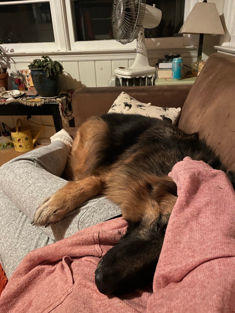 I wish him well and here I am snuggling it up with our dog.